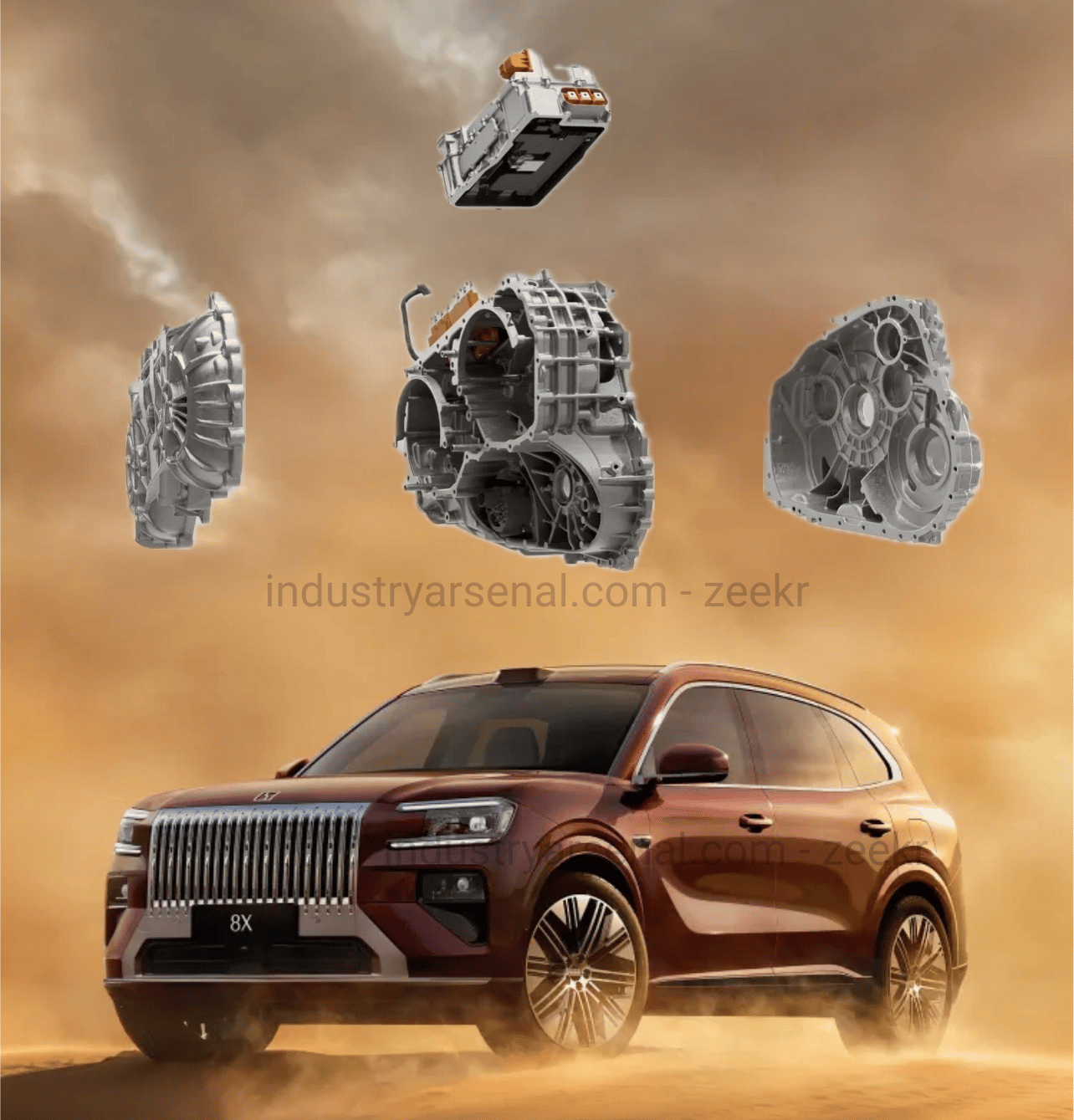 Zeekr collaborated with China’s top material research teams to develop a proprietary vehicle-grade rare-earth magnesium alloy. Key load-bearing structural part, including the motor housing, reducer housing, inverter upper housing, and end covers, are all formed using magnesium die casting.